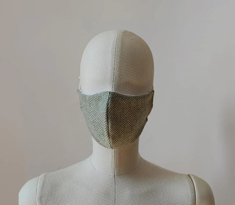 These wool herringbone face masks come with a tweed outer and a cotton lining with a washable filter in between.